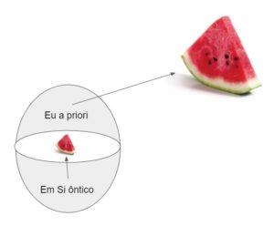 Então o problema é que a partir daí o Em Si ôntico daquela criança vai intencionar que quer melancia mas a criança vai ver a melancia como morte, como perigo, aquela melancia está estragada e vai me fazer mal. Vai dizer não para o Em Si ôntico dela. Vai pensar: “Não posso. Se eu pegar a mamãe não me ama mais”.