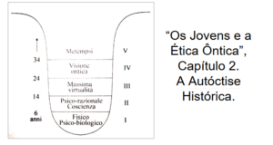 Na figura 1, no livro “Os Jovens e a Ética ôntica” Meneghetti descreve 5 fases de como nós, seres humanos, deveríamos nos desenvolver. Seguindo a ordem de natureza, prevista pela vida, teríamos essas fases de desenvolvimento.